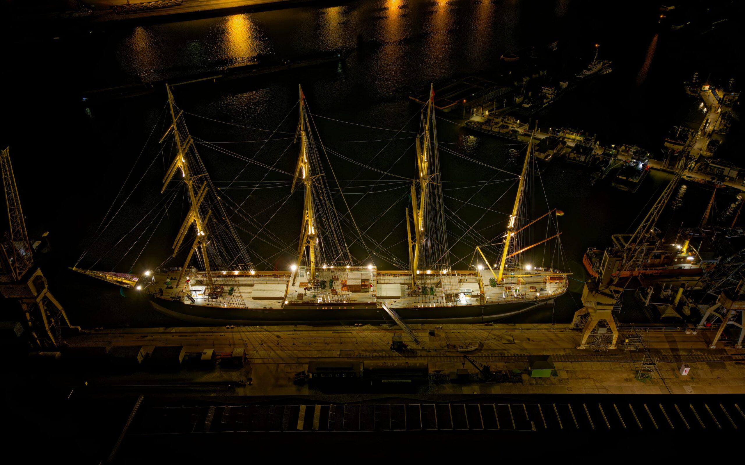Wenn die Nacht über den Hamburger Süden zieht, verändert sich der Blick auf die Stadt. Straßen werden zu leuchtenden Linien, Industrieanlagen und Wohngebiete verlieren ihre Schwere und fügen sich zu einem ruhigen, fast grafischen Gesamtbild. Von oben betrachtet entfaltet sich eine stille Ordnung, getragen von Licht, Wasser und Weite.